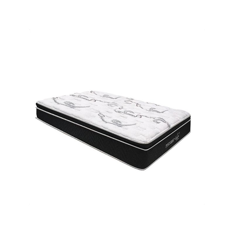 Colchón Restonic King VELVETTu ritmo de vida requiere del mejor descanso. Es momento de estrenar sueños disfrutando de un descanso realmente reparador.CARACTERÍSTICAS:Continuo. Estructura metálica con resortes que brinda estabilidad y confort a tu descanso.Better Sleep. Suaves soportes de espuma que brindan mayor estabilidad y firmeza a tu descanso.Cotton Layer. Suaves acojinamientos de algodón que brindan soporte y confort a tu descanso.Strong Texture. Tejido resistente para disfrutar de más noches de descanso.Relax Texture. Siente la suavidad del tejido de nuestra tela que abraza tu sueño.Euro Top. Colchoneta extra para mayor comodidad.